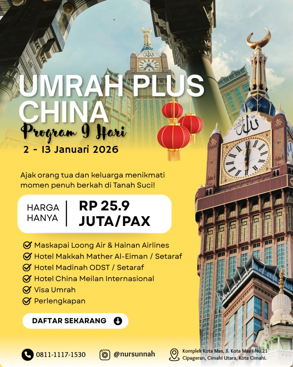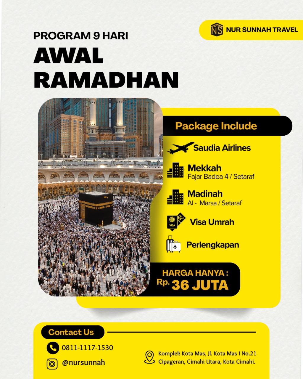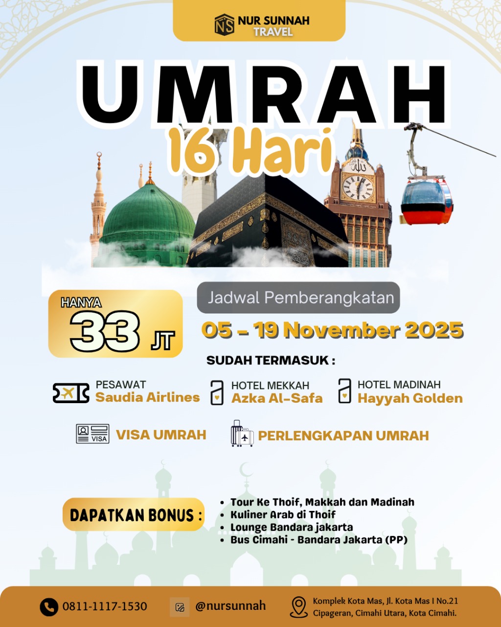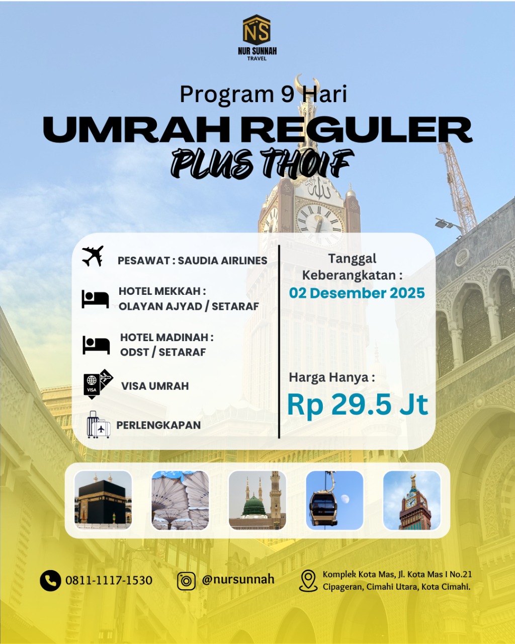 Rencanakan perjalanan ibadah umroh Anda bersama Nur Sunnah Travel.